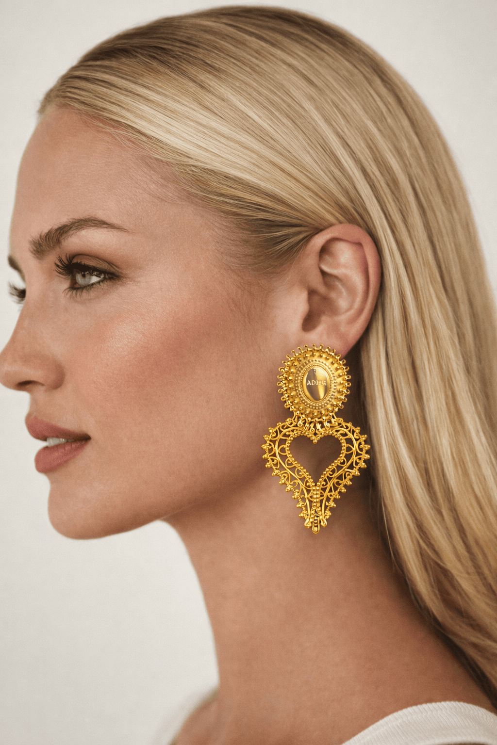 Lamprocapnos Earring is inspired by the Lamprocapnos flower which is heart shaped beautiful flower. It is handmade with 18k Gold Plated Brass.